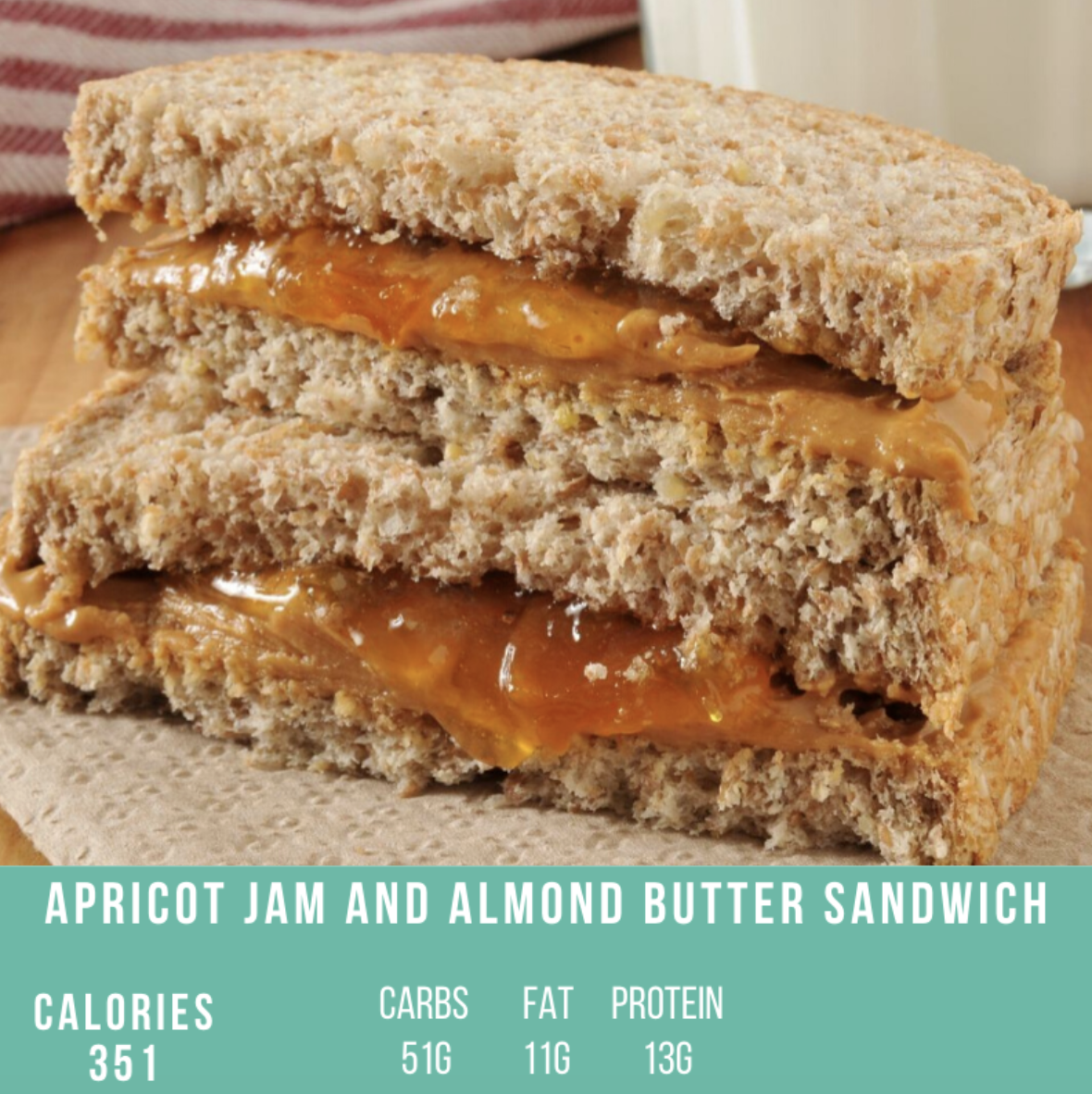 2. Cover one slice with almond butter and the other slice with jam put together and eat.